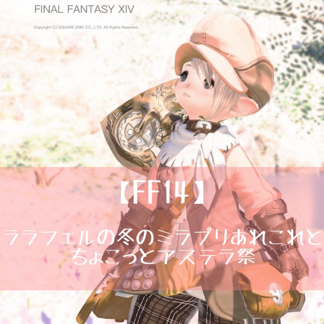 こんな感じでFF14はミラプリ考えたり、スクショとったり、エデン再生に行って装備集めたり、アラルレとモブハンに参加しつつ、時々クラフターで金策したりしてるだけなんだけど、結構やることいっぱいです。