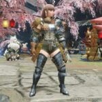 女性ハンターは着物のハダけた部分から脚がしっかり見えてるのがちょっと気になっちゃうかも。この見え方だと男性っぽく見えちゃう。時代劇の桃太郎侍とかこんな脚の見え方してましたよね。
