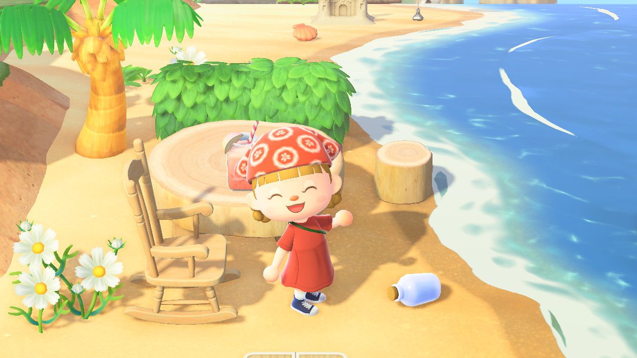 - 自分の島へ帰り、5時のアナウンスを聞いた後、再び浜にあるメッセージボトルを拾う
